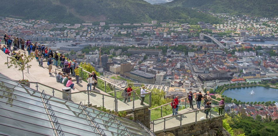 Vom 320 m ü.d.M. liegenden Fløyen haben Sie eine groβartige Aussicht, können alle Einzelheiten der Stadt studieren und den Blick auf die Hafeneinfahrt und die Fjorde, die Bergen umgeben, genieβen. Im Bereich des Gipfels liegt ein wunderschönes Gebiet mit hübscher Natur und zahlreichen Wandermöglichkeiten. Auf dem Fløyen finden Sie auch Café, Souvenirladen und einen Spielplatz.