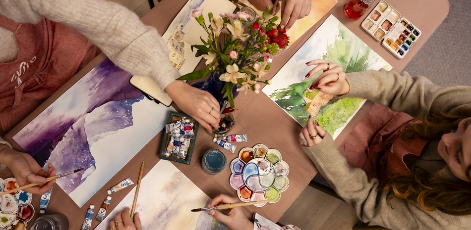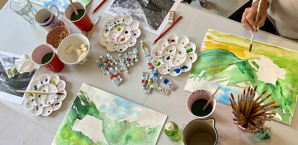 Norwegische Landschaft mit Aquarell malen im JM Atelier