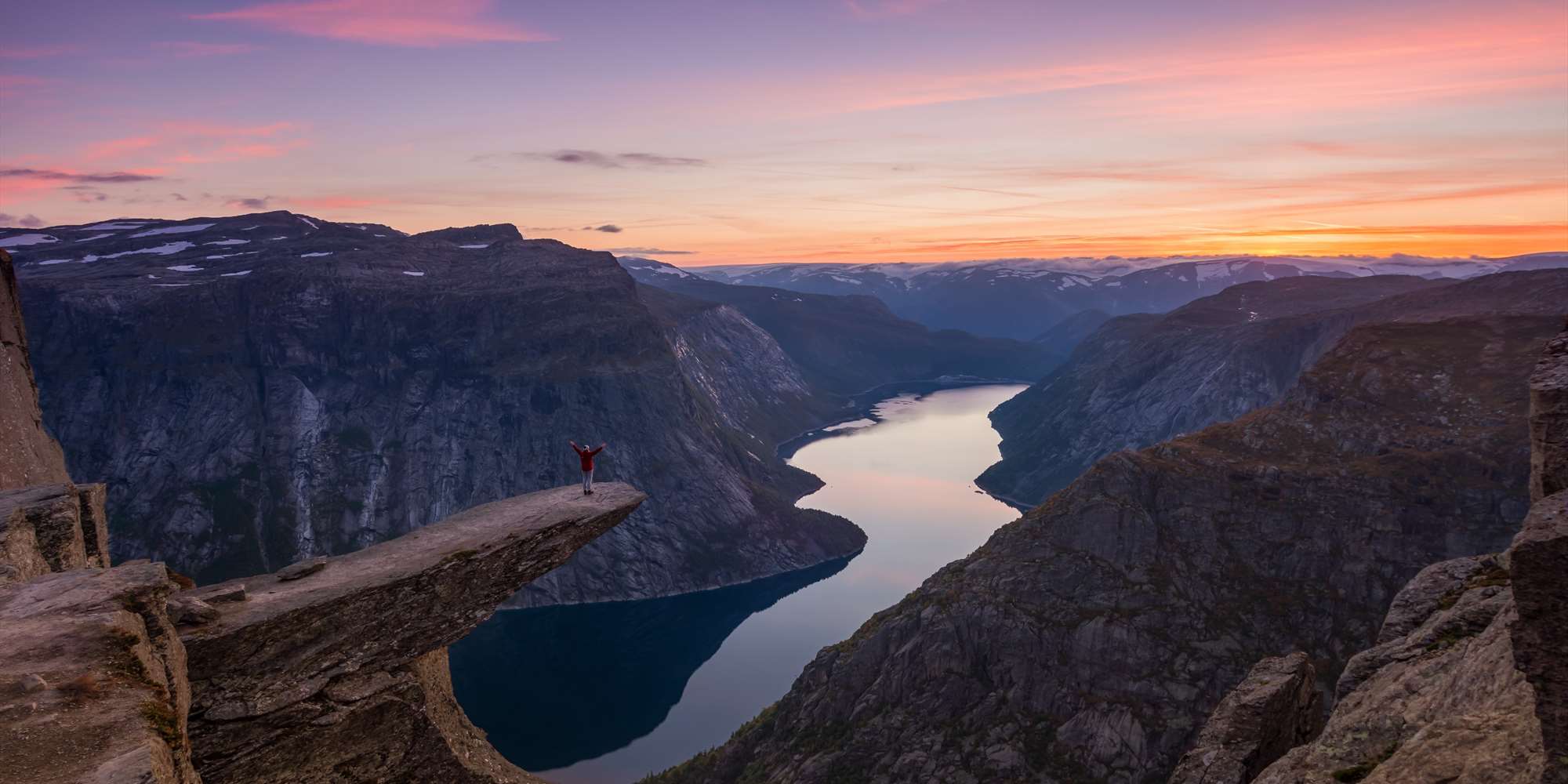 Diese Reise ist perfekt für diejenigen, die so viel Zeit wie möglich auf Trolltunga verbringen möchten, um dort zu sein, wenn die Sonne untergeht, um etwas Zeit alleine auf das majestätische Tal zu schauen und alle die anderen schönen Orte zu entdecken die das Gebiet zu bieten hat. Erleben Sie die Stille und das besondere Licht am Morgen, bevor die Menge einmarschiert. Diese Reise garantiert Ihnen das perfekte Bild!