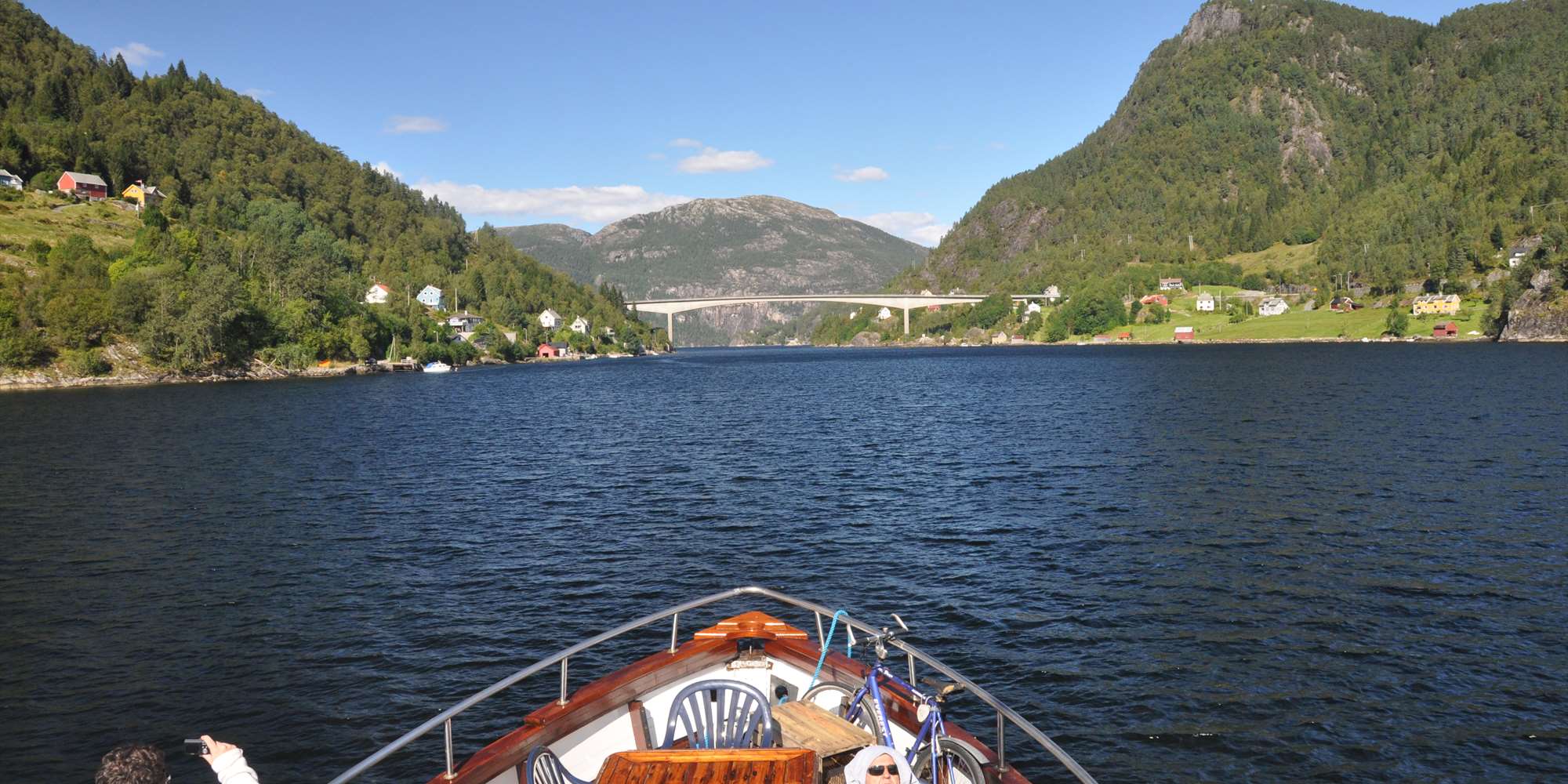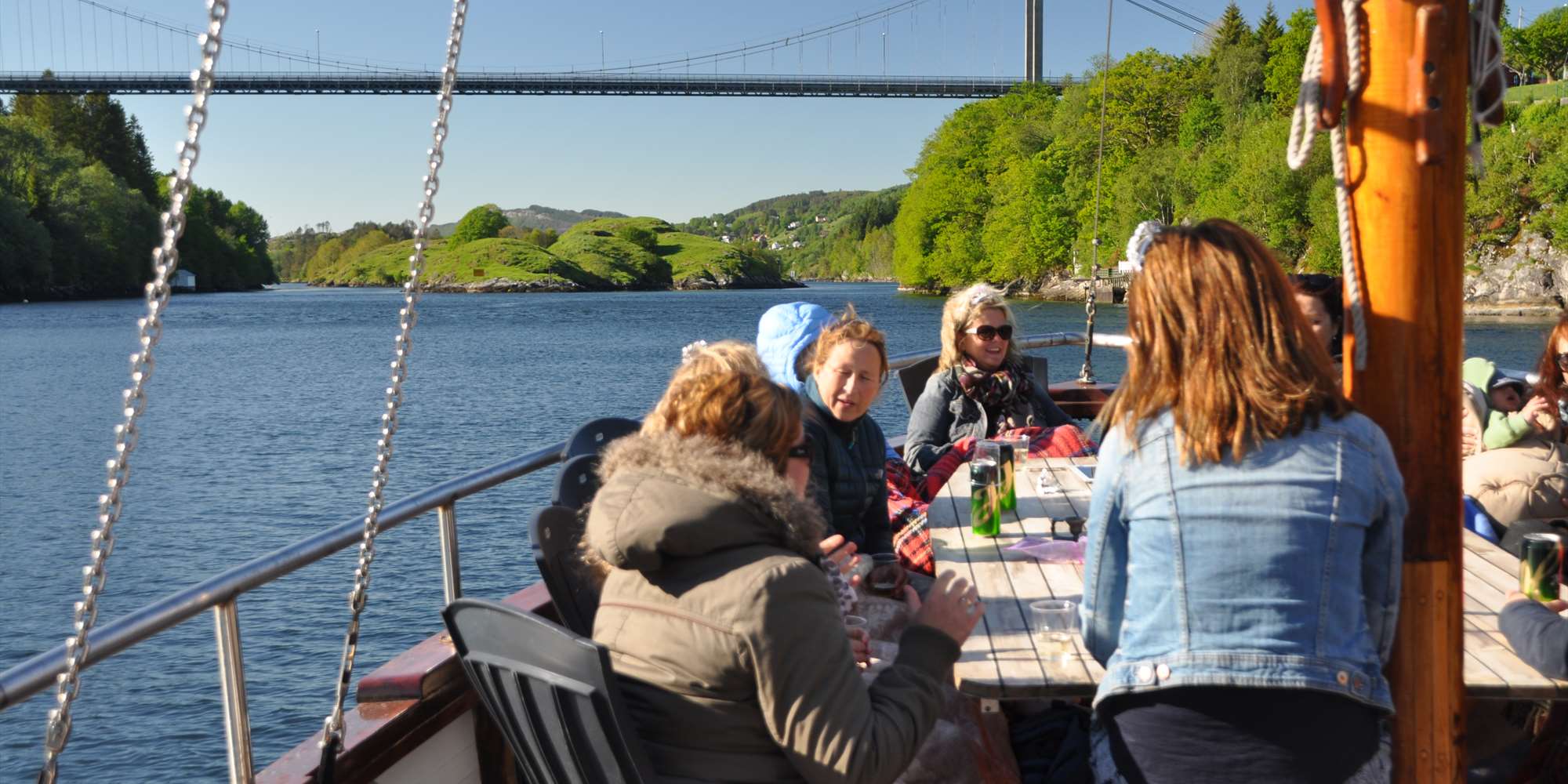 Die Tour startet im Hafen von Bergen mit Blick auf die alten Holzhäuser auf der Sonnenseite der Stadt. Auf dem Weg durch den Byfjord in Richtung Norden können Sie beobachten, wie sich die Bebauung im Laufe der Stadtenwicklung verändert hat. Von hier aus erhaschen Sie einen Blick auf den steilsten Berglauf der Welt, der zum Sandvikspilen führt. Weiter nördlich passiert man die bekannte Industriegemeinde Salhus, bevor man die Nordhordlandsbrücke passiert – einst die längste Schwimmbrücke der Welt.