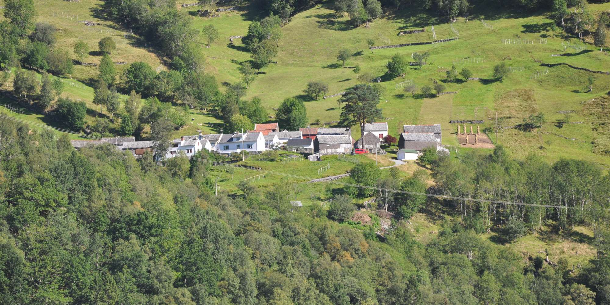 Auf der Backbordseite können Sie bald Havråtunet sehen, ein altes Haufendorf, in dem noch heute traditionelle Landwirtschaft betrieben wird.