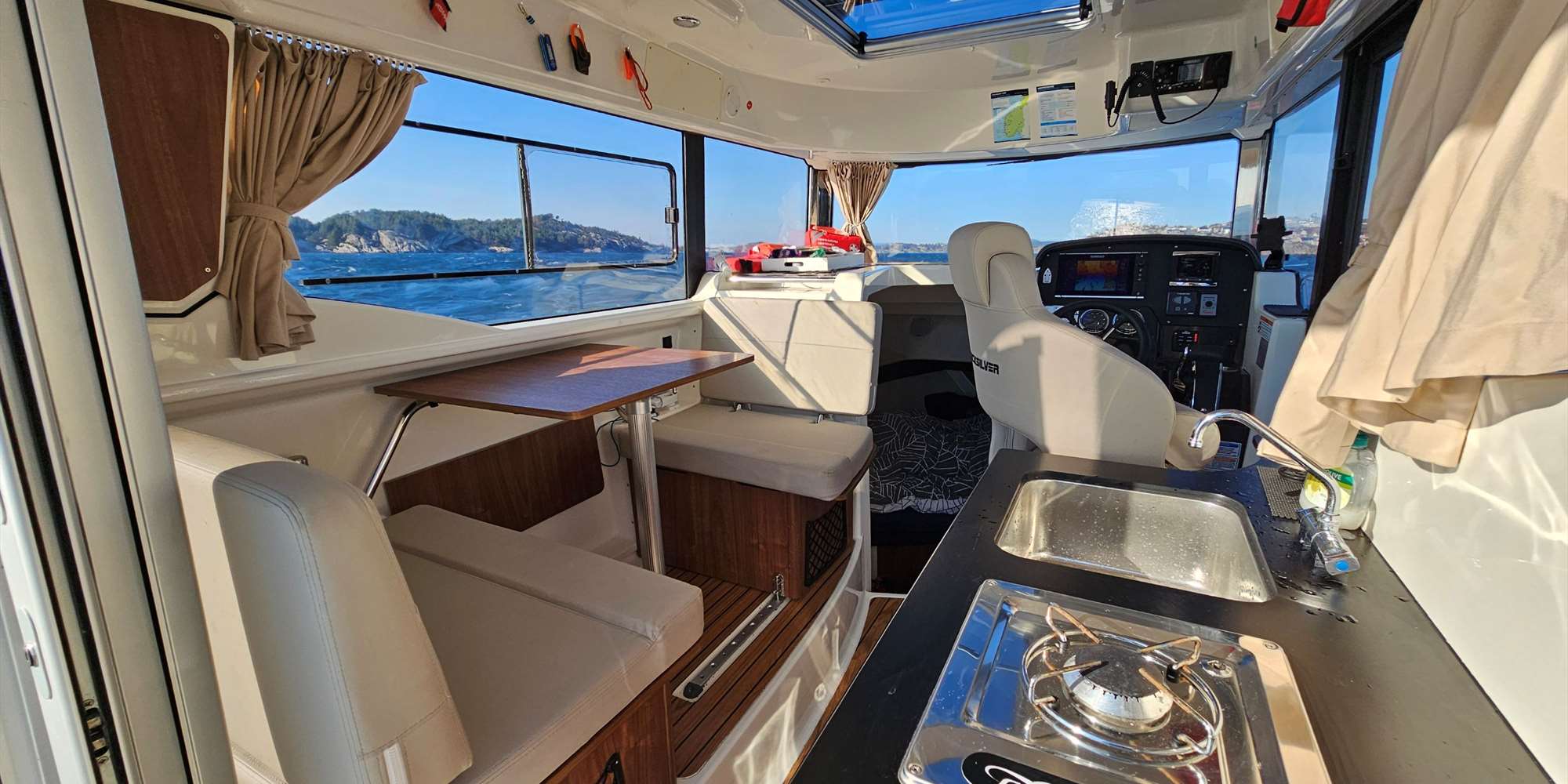 Dies ist ein sicherer, ganzjährig nutzbarer Bootstyp, der ohne Kompromisse entwickelt wurde. Das Boot ist sehr einfach zu handhaben, mit Fahrpositionen im Inneren der Kabine und auf dem Heckdeck sowie leichtem Zugang rund um das Boot, selbst wenn man alleine ist.