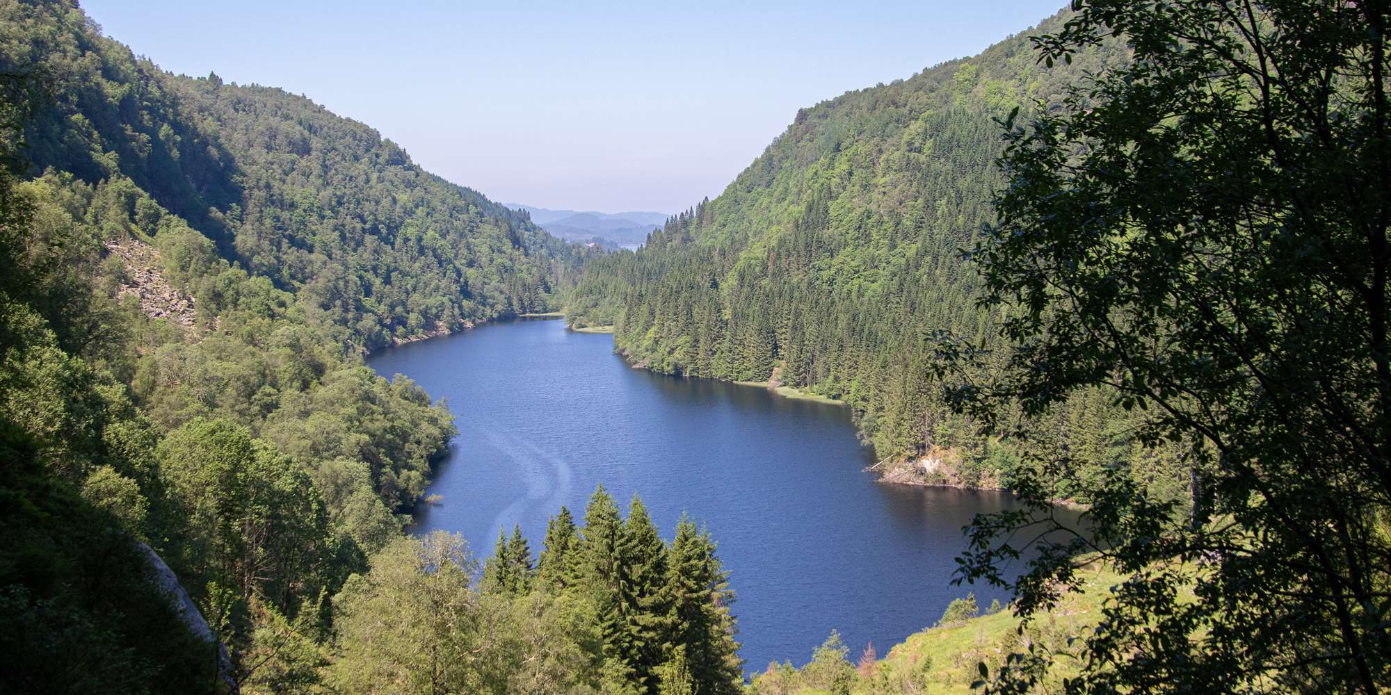 Von Mjøsvågen führt eine alte Straße ins Tal Kossdalen hinein. Dies war früher die Hauptverbindung zwischen Hosanger und den Höfen im Inneren der Insel Osterøy, heute fahren hier keine Autos mehr. Schon dieser alte Weg lohnt die Wanderung, denn es handelt sich um ein kulturgeschichtliches Denkmal vom Ende des 19. Jahrhundert. Am Ende dieser alten Straße steigt der Weg steil an und erreicht am Talhang eine Höhe von 175 Meter. Auf einer Strecke von 400 Metern gibt es hier 17 Haarnadelkurven, die durchschnittliche Steigung beträgt 27 %. Hier müssen Klein und Groß ab und zu anhalten und ordentlich Luft holen, tolle Aussicht inklusive.
