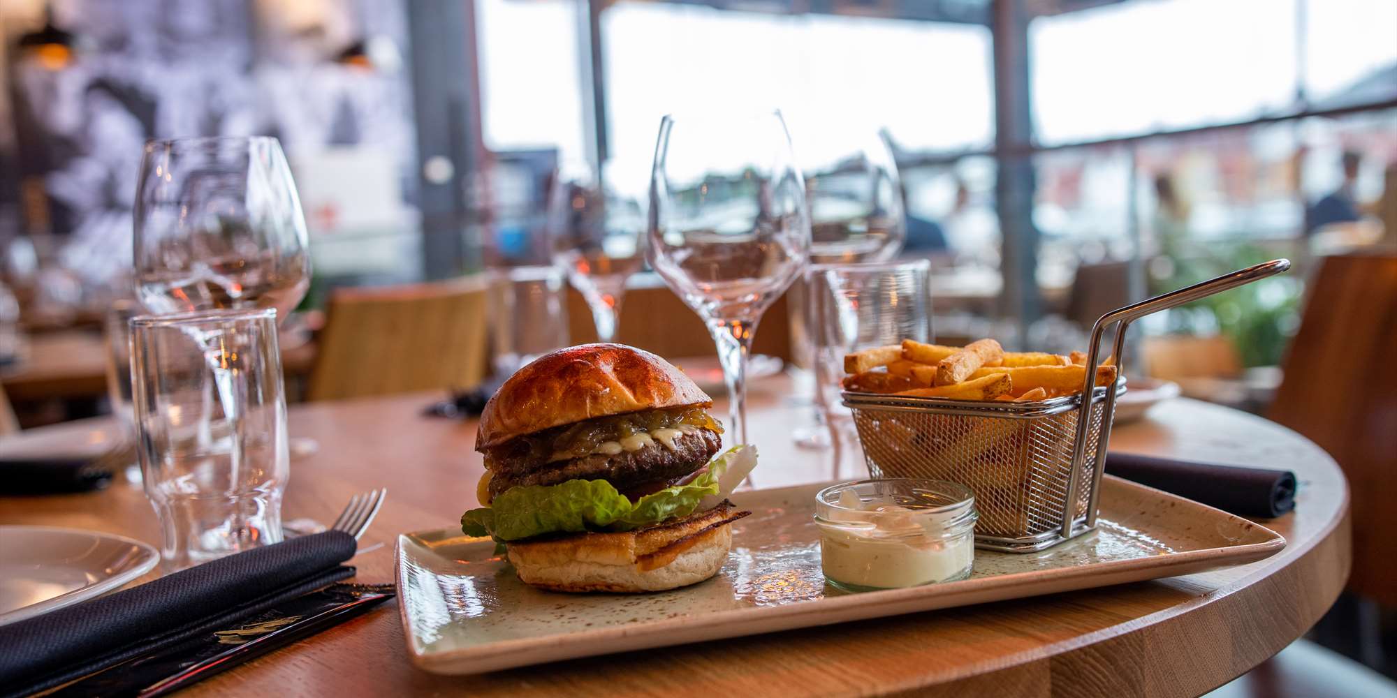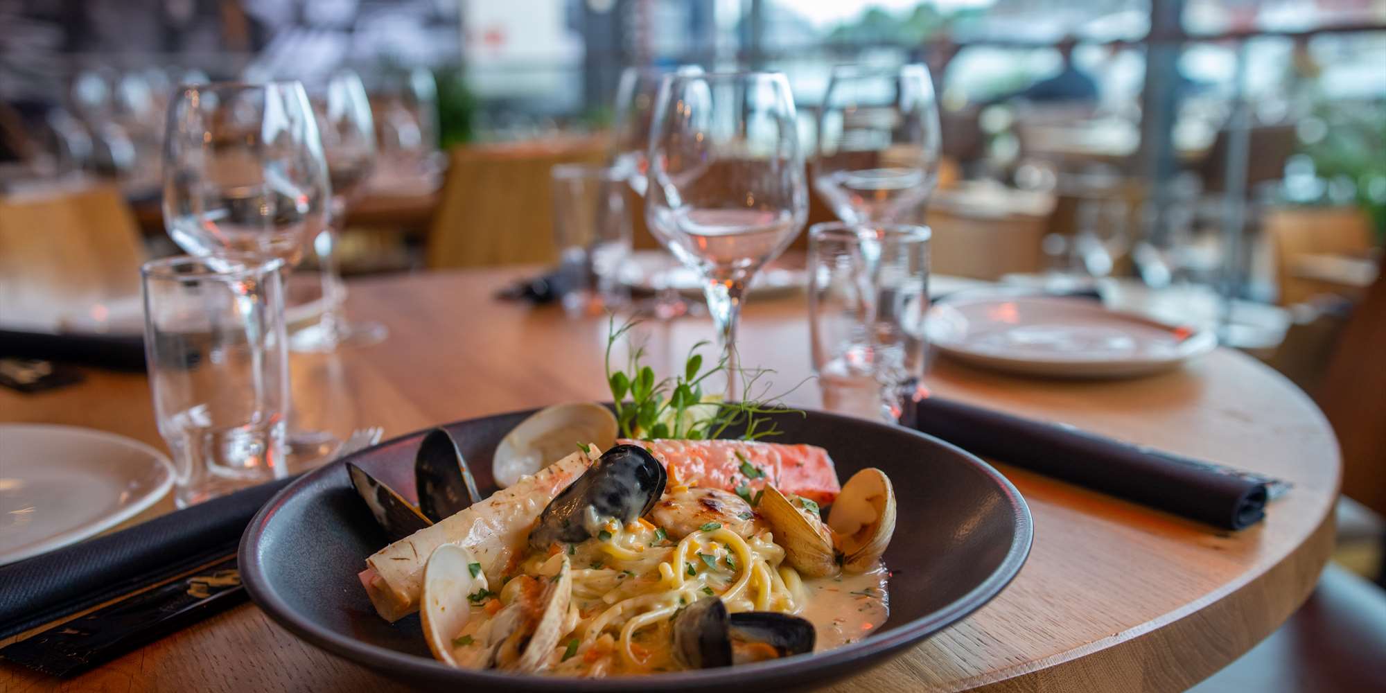 Die Küche schließt eine Stunde vor Restaurantschluss.
